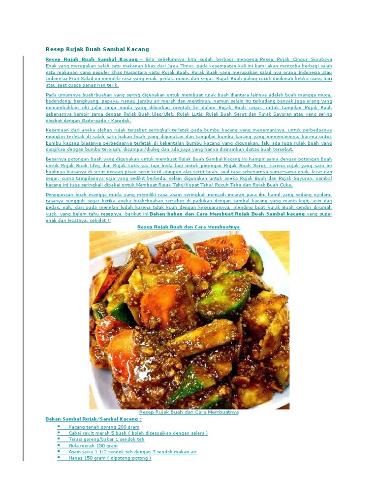 Resep rujak mangga bumbu kacang. Ada beragam resep dan cara membuat rujak pengantin. Resep sambal kacang untuk bumbu rujak buah rujak buah merupakan salah satu makanan populer khas nusantara yang cukup digemari. 305 resep rujak buah bumbu kacang ala rumahan yang mudah dan enak dari komunitas memasak terbesar dunia. Pelajari lebih lanjut tentang debugging di wordpress.