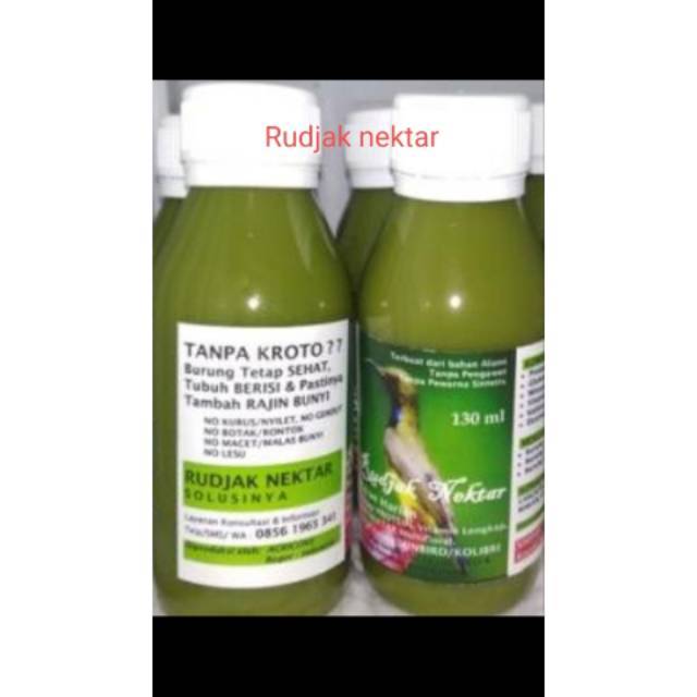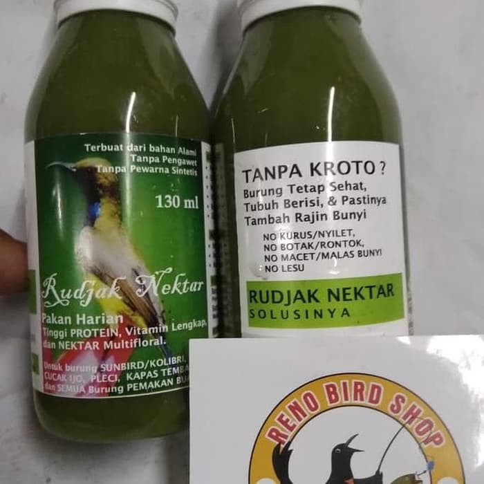 Nektar merupakan larutan manis yang umumnya terdapat di dalam kelopak daun ataupun di dalam bunga yang digemari oleh kumbang serta dapat pula dihisap oleh burung kolibri. Burung tidak hanya tambah rajin bunyi tapi membuat tubuh burung berisi. Rudjak nektar sangat baik untuk dijadikan sebagai pakan harian untuk semua jenis sunbirdkolibri dan juga untuk burung cucak ijo. Cari produk makanan burung lainnya di tokopedia.