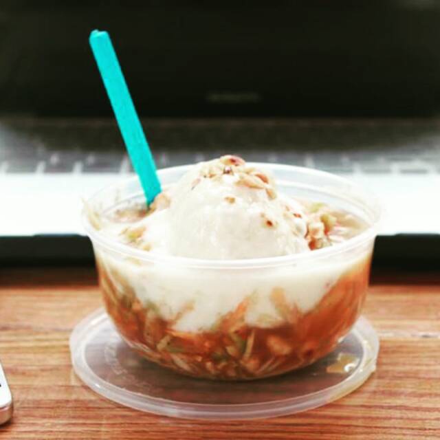 Cuaca panas matahari terik enaknya makan yang adem adem seger nih. Es krim nanas bengkoang pepaya kedondong mentimun gula merahgula jawa petis. Cara manual membuat es puter. Setelah ituhampir setiap hari saya beli rujak ice cream enak.