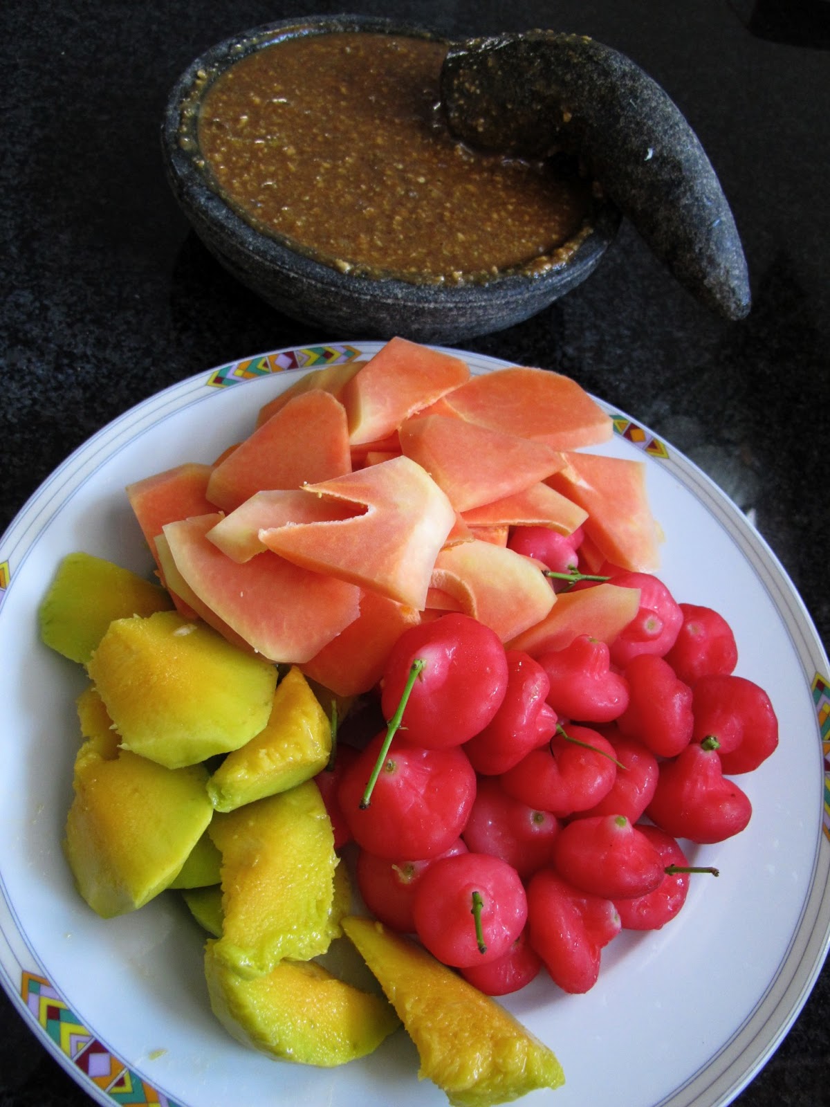 Langsung pak suami request dibuatkan bumbu rujak manis tahu goreng untuk menemani si jambu merah cusss langsung ke dapur untungnya stok kacang tanah hasil panen beberapa waktu lalu masih ada. Ulek rata dan jangan terlalu hancur. Untuk tampilan rujak buah. Nama latin jambu air.