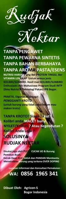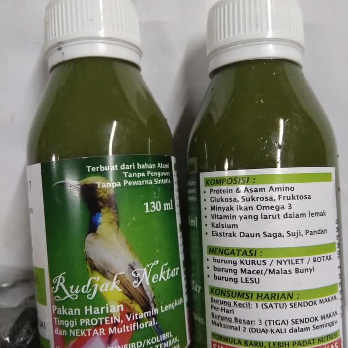 Bl217 rudjak nektar 250 ml pakan burung kolibri rujak nektar hijau. Rudjak nektar pakan kolibrikoninsunbird pakan harian bernutrisi lengkap protein tinggi kaya vitamin dan praktis tanpa kroto burung tetap sehat berisi dan pastinya rajin bunyi. Burung tidak hanya tambah rajin bunyi tapi membuat tubuh burung berisi. Jakarta barat redstore25 2 tambah ke wishlist.