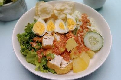 For most of indonesians rujak is referred to fruit salad that is served with spicy peanut sauce. Kentang secukupnya kukus sampai matang 1 buah timun buang isinya potong dadu kol iris halus secukupnya daun selada potong kasar secukupnya tahu goreng secukupnya telur rebus secukupnya emping goreng saya tidak pake sambal halus kacang goreng secukupnya 5 cabe rawit merah 15 sdt ebi sangrai 2. 12000 ga sampai 1 euro. Im just trying mengkreasikannya appropriate style.