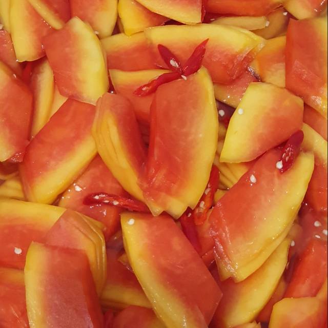 Lihat juga resep rujak buah pepaya pedas manis bumbu kacang enak lainnya. Lihat juga resep rujak manis naya nanas pepaya enak lainnya. Cuaca yang panas memang paling enak jika makan hidangan yang segar segar seperti rujak buah. Campuran bermacam macam buah seperti pepaya jambu mangga nanas bengkuang dan kedongdong yang disajikan dengan sambal kacang ini menimbulkan sensasi yang luar biasa apalagi ditambah dengan petis atau terasi.