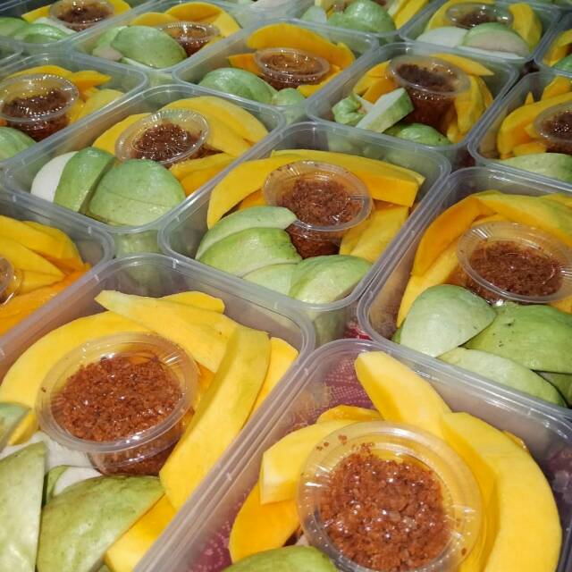 Cemilan dari buah segar dengan siraman saus kacang yang terasa manis dan pedas memang sangat menyegarkan sekali.